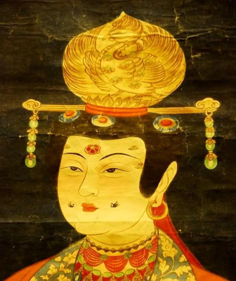 唐末五代敦煌壁画中女供养人曹议金夫人的花黄脸饰(张大千摹)