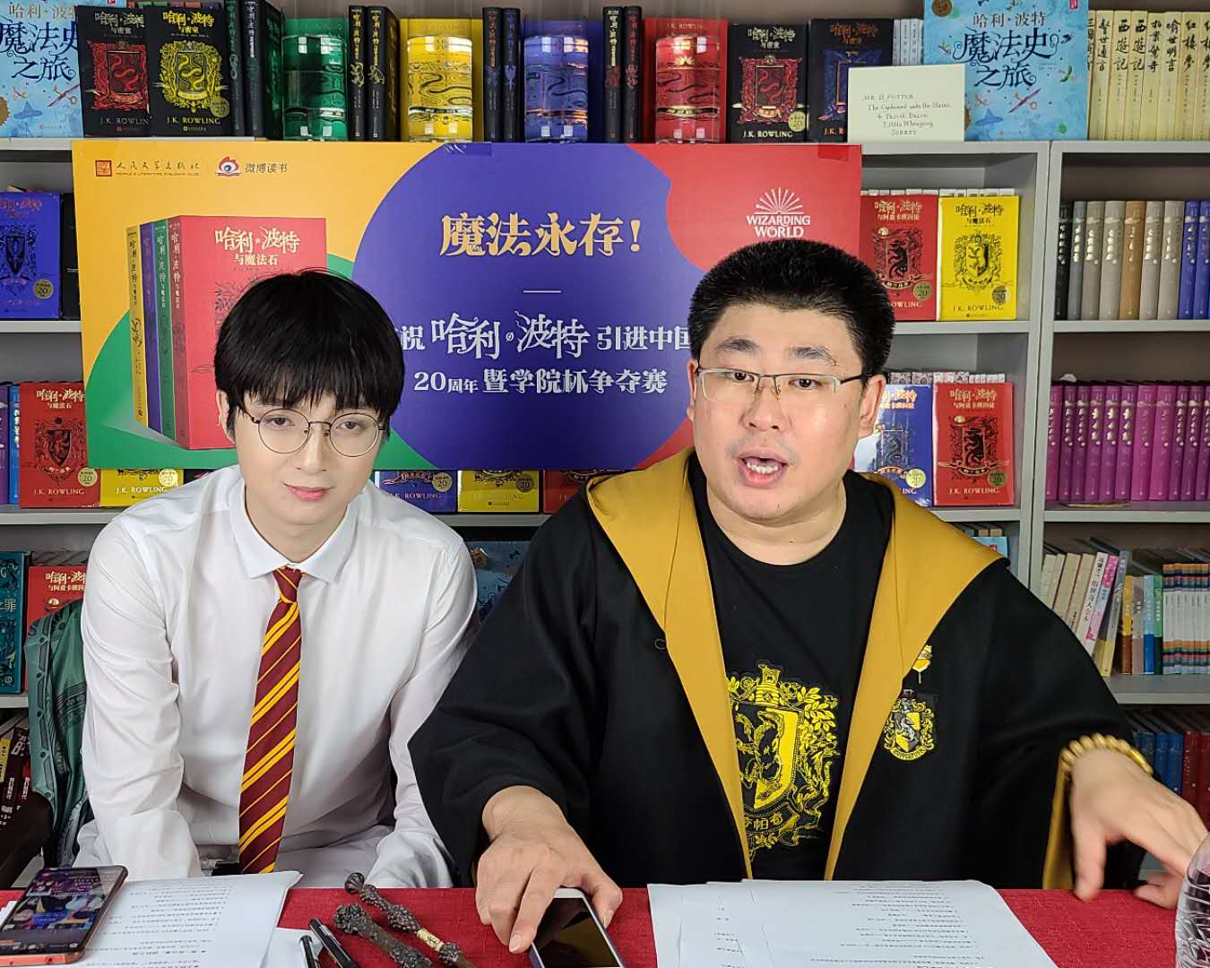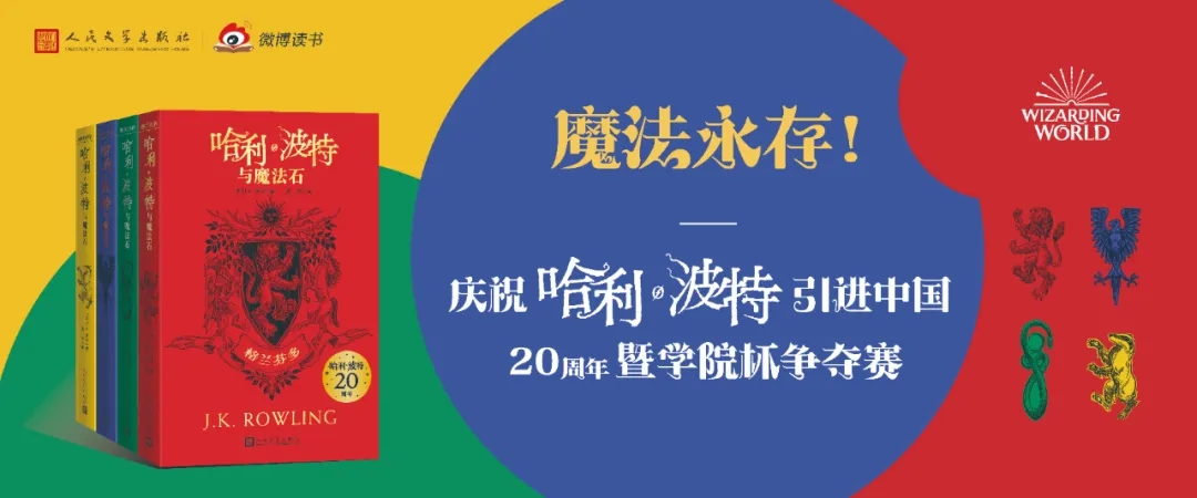 7月31日,即哈利•波特与该系列小说作者J.K.罗琳生日当天,由人民文学出版社联合网易举办的“魔法永存——庆祝‘哈利•波特’引进中国20周年暨学院杯争夺赛”活动通过微博平台举行,在线观看“哈迷”超过90万。中国出版传媒股份有限公司董事、总经理李岩和人民文学出版社社长臧永清分别致辞,“哈利•波特”系列图书的责任编辑王瑞琴、马博和译者马爱农与数十万“哈迷”亲密互动,分享20年间读书感悟。活动由青年评书演员郭鹤鸣主持。