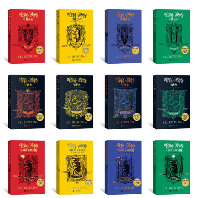 在“哈利•波特”系列图书引进中国20周年之际,由人民文学出版社出版的“哈利•波特”学院纪念版上市。学院纪念版基于读者热爱的学院概念来庆祝这部20年来魅力不减的作品。该版本将同样的故事推出格兰芬多、斯莱特林、赫奇帕奇和拉文克劳四个学院版本。四个版本共同拥有最新修订的译文,完整收录了小说内容。而与此前故事的不同之处在于:每本书都根据自己的学院增加了大量相应的全新内容,如学院创始人、著名学生、知名校友、院长、学院幽灵的简介等等。此外,装帧是此版本区别于其他版本“哈利•波特”的另一亮点,这本书完整复制了英国学院版的工艺,不仅全部使用触感膜封面加以烫金、UV、起鼓等工艺,每个学院的书口更是刷上了标志性的学院配色。