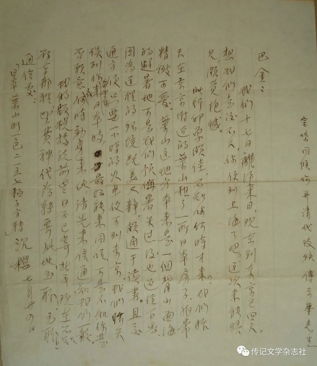 [1] 沉樱1934年7月24日致巴金信,上海巴金文学研究会整理:《写给巴金》,大象出版社2008年4月版,第126页。