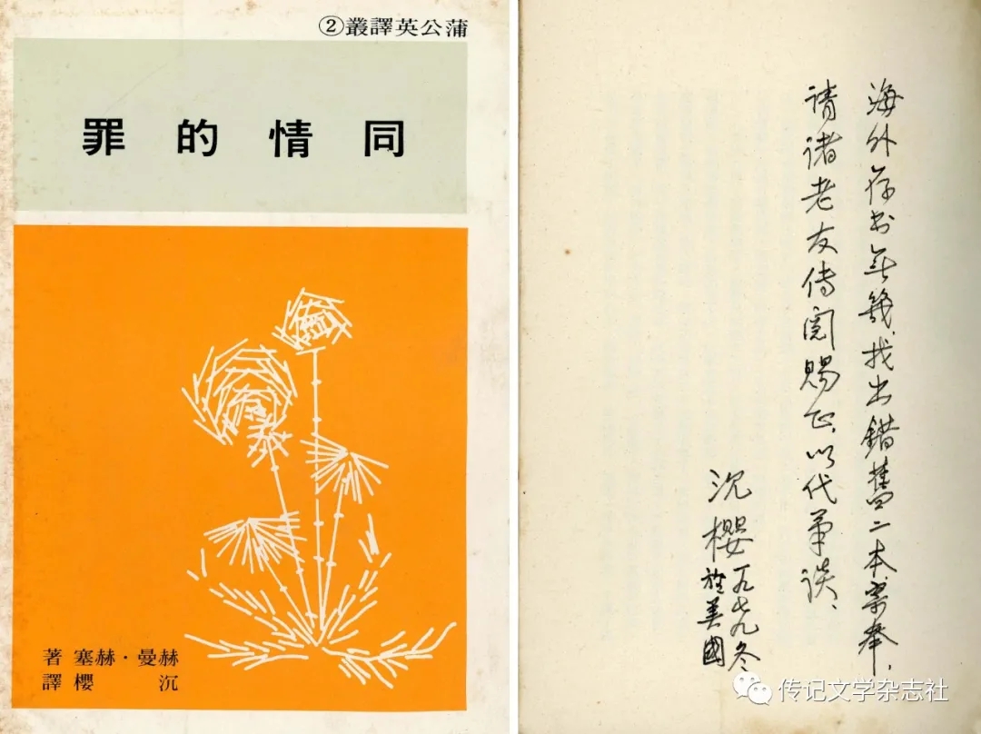 沉樱翻译的黑塞、毛姆、茨威格(褚威格)的作品曾迷倒过不少台湾人。作家王开平曾回忆年轻时追沉樱译本的事情,当时他对翻译小说痴迷神往,有一天,遇见了一本叫《同情的罪》的翻译小说: