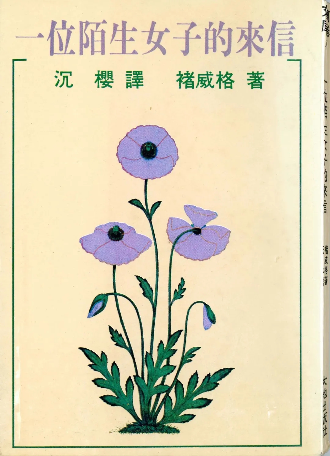 《一位陌生女子的来信》共印三十版之多,销售超过十万册,这在六七十年代的台湾,也是不大不小的奇迹了。沉樱受到鼓舞,把原来交给别的出版社(书局)出版和发行的书收回来自己印、自己卖,短短几年内她印了近二十种。“这本书(指沉樱翻译的《一位陌生女子的来信》——引者)带给读者的是什么,我不知道,但给与我的却太多了。第一,由于它的畅销带来的物质和精神的鼓励,使我在一年内又印了其他九种小书,甚至有了要成立一个译文出版社的野心,想今后尽量为大家供应翻译读物,作为自己退休后的从业。第二,由于这些书的印行,使我这糊涂无用的人居然也处理了些印书发书的事务;虽然错误时出,但一个人忽然做起自己一向认为不会做的事,总是得意非凡、沾沾自喜的。”[32] 令她兴奋的,不是物质收入,而是内心的满足和成就感:“自己除了因翻译而对原作深切感受之外,还有一件高兴的事,就是因出书而得和大家接触。过去虽也出过几本书,但接触的只是书局,从来不知自己的读者是谁。现在每天能从划拨单上认识几个完全陌生的姓名,在寄书封套上写些从来不知道的地址,好像自己的交游忽然广泛,生活也跟着活跃起来;如果再在通讯栏内看到几句称赞的话,便像遇到知己,简直乐不可支了。”[33]