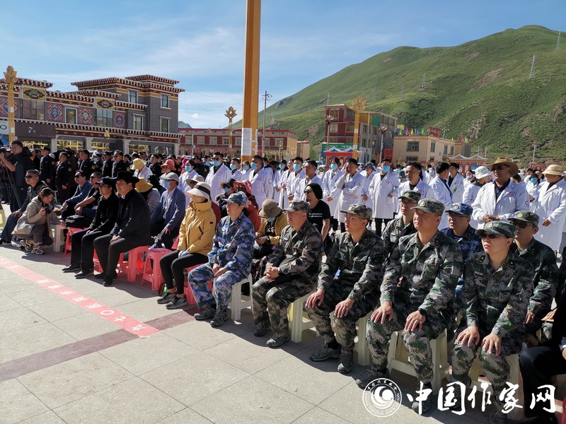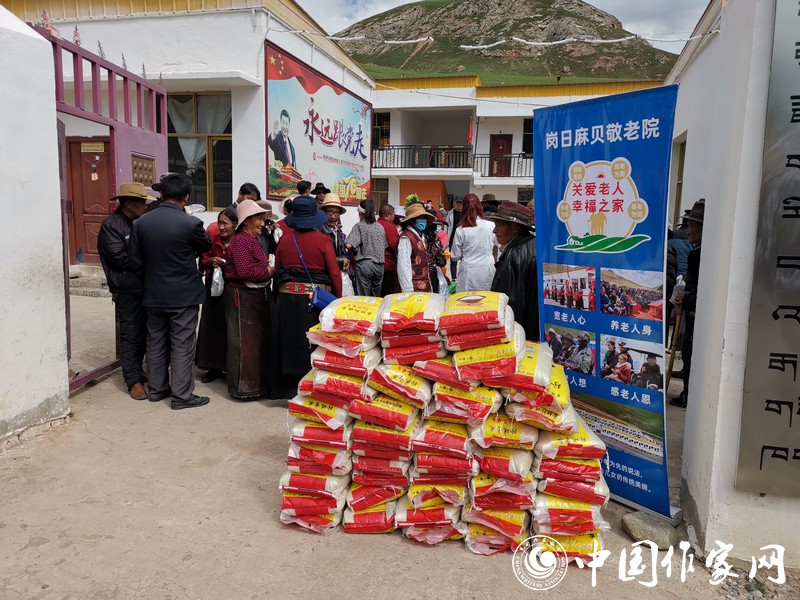 山东省作家团与第970医院援青医疗队在岗日麻贝敬老院进行巡诊和捐赠粮食