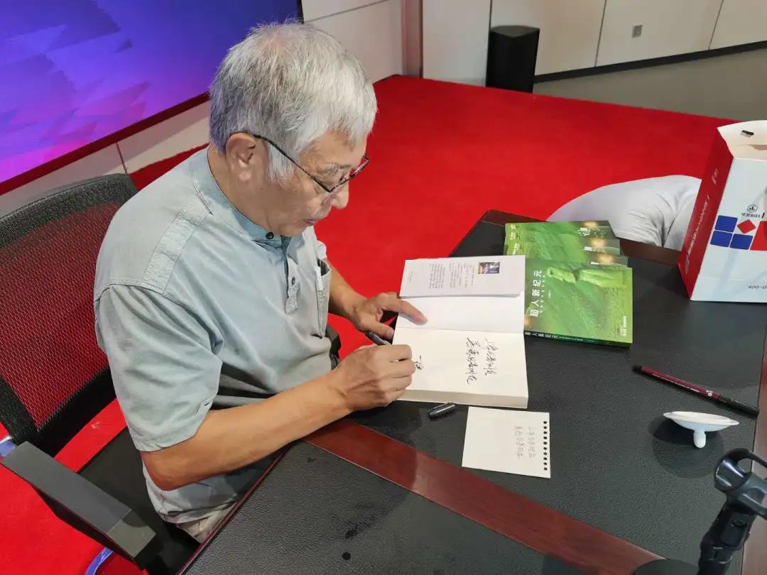 直播结束后,王晋康与专程赶来直播现场的书友互动并为其签名