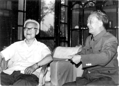 艾青(右)与巴金在交谈 资料图片