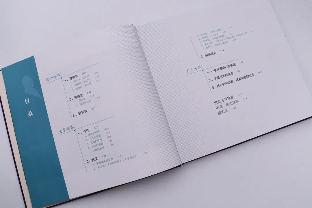 大型图文传《巴金的世界》是一部全面反映巴金的思想历程、文学成就和生平经历的画册,全书分为”信仰世界”、”文学世界"、"生活世界"三个部分,收录了许多珍贵的照片,有巴金在各个时期的照片、巴金作品各个版本的书影、巴金作品中的插图、巴金的书信等。它是巴金故居文献整理工作成果的集中展示,也为读者了解巴金和同时代人打开了一扇大门。