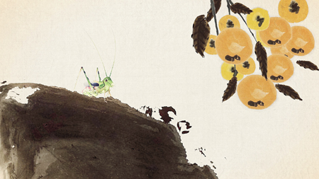 2018年,我带领团队创作完成水墨动画《秋实》 ,入围第七十届柏林国际电影节新生代单元,这也是唯一一部入围本单元的中国影片。这部具有“中国动画学派”现实意义的动画影片,在继承与发展中也面临诸多挑战。首先,传统的水墨动画由于技术限制的原因,无法表达更加自由灵活的运动镜头,镜头的运动只能靠些简单的推拉摇移。因为所有的运动镜头要画出来,因此需要平面垂直摄影机拍摄下来,由于三维电脑技术的突破,镜头的运动限制问题得到克服,但是也带来了新问题。中国动画学派强调“散点透视” ,这一美学特征又束缚住了这种视听语言的运用。所以在这个过程中,我和我的团队一直努力探索一种全新突破。此外,作为首部8 K显示技术放映的水墨动画, 《秋实》在呈现效果上把中国水墨画美学尽善尽美地呈现出来了。我们在观看影片时,可以看到宣纸的纹理和水墨画的笔触,包括草虫的细节等,这些都是基于8 K技术来呈现的。我们需要重拾“中国动画学派”的美学,重新认识、重新学习,并重新塑造属于我们的文化自信。