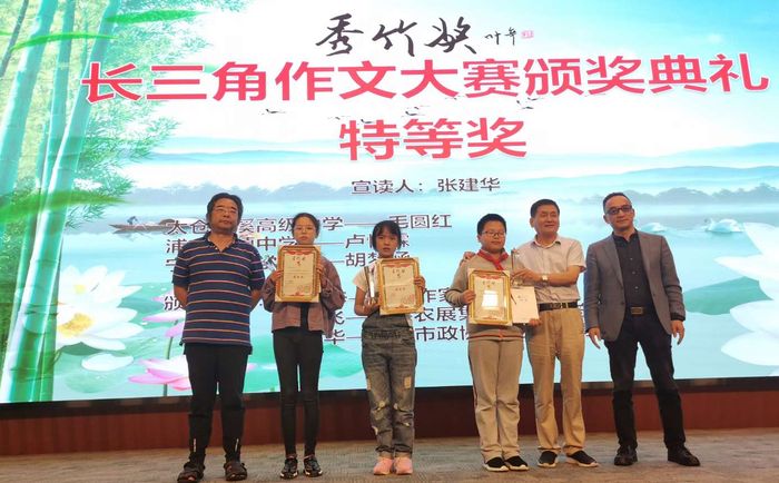 本次作文比赛吸引了来自长三角地区50余所中小学的学生参与,共收到600余篇参赛作品,最后评出50余篇得奖作文,作家叶辛等为获奖学生颁奖。