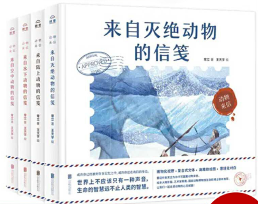 动物来信系列包括《来自陆上动物的信笺》《来自水下动物的信笺》《来自空中动物的信笺》《来自灭绝动物的信笺》,用动物写信的方式总结的关于世界的科学事实、历史知识,其中有很多生命与生命温暖的交流,也有很多令人心痛的现实。