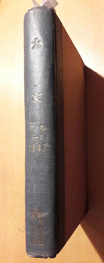 我这本《大家》还有点儿说头,合订本的书脊下面有二行字“群众出版社 资料室藏”,创刊号封面盖着红方章“群众出版社资料室”。凡是玩旧书的,谁手里没有几本“群众出版社”的旧物呢。至于何以该社的藏书铺撒得满天星斗,我是知道内幕的,如果谁有兴趣,不妨读读韦力的《失书记》和《上书房行走》,里面有那个惊心动魄的传奇故事。我补充一点儿,该社的平装书是一个去向,该社的线装书是一个去向,该社的老杂志又是另一个去向,在运输老杂志的过程中,难免发生如敦煌遗书押解送京途中所发生的小偷小摸。鲁迅说过:“在中国凡是公共的东西,都是不大容易保存的。倘其落在内行的手里,就会被偷完;倘其落在外行的手里,就会被糟完。”
