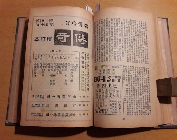 一九四五年八月之后,上海的文化期刊有过几个月的间歇,又繁荣起来。我的收集兴趣虽然不如八月之前那般热烈,但是见到中意的几乎全买到手了,如《文艺复兴》,《人世间》,《文章》,《周报》,《大家》,《文萃》等等,这么说吧,该有的全有了,这些品种均可视为杂志中的上驷。《大家》的得手稍曲折,一开始我搜集张爱玲的初发刊只限于一九四五年八月之前的,没有通盘考量,等到醒悟过来正确的作法时,张爱玲已经是热门的标志,不好找而且价钱贵。我的书友赵国忠某个周末早晨在潘家园书摊碰到一个书贩卖一堆旧期刊,他钱不够,赶到门口等我来,再去找那个书贩,东西已经易手。赵兄无大所谓,旧期刊不是他的主项,我却懊丧不已,问他那堆杂志里都有什么,称有《文饭小品》,《大家》,《人间世》等十几种,我更是懊恼。
