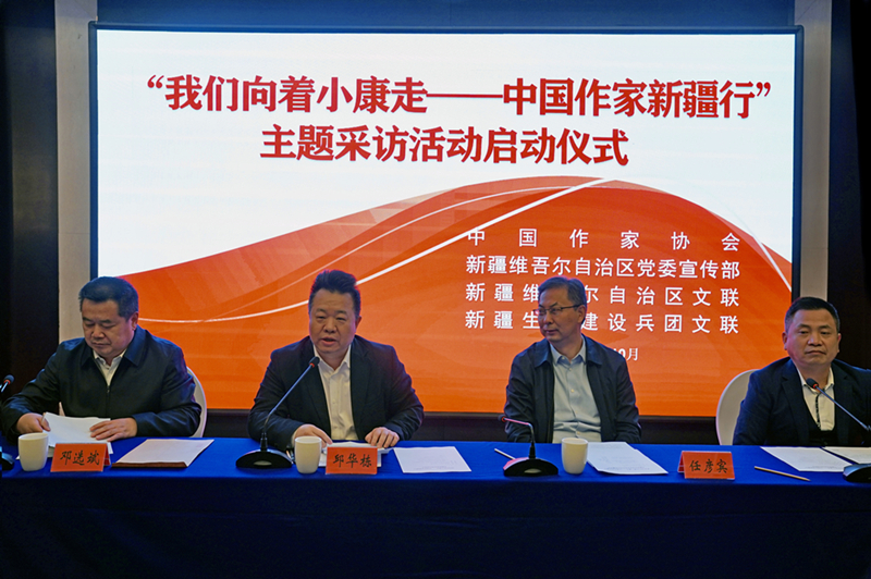 主题采访活动启动仪式在新疆乌鲁木齐举行,中国作协书记处书记邱华栋,新疆维吾尔自治区党委宣传部副部长任彦宾,新疆维吾尔自治区文联党组书记邓选斌,新疆维吾尔自治区作协主席阿拉提·阿斯木出席启动仪式。启动仪式由中国作协创联部主任彭学明主持。