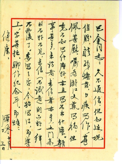 15年后,“温暖的友情——巴金与友朋往来手札展”回到嘉兴,有意无意中,展出方向竟与15年前一致,而内容涵盖更为丰富。其中有巴金与鲁迅、郭沫若、茅盾、老舍、曹禺、叶圣陶、冰心、沈从文等40余位友人及其家属的往来手札,巴金收藏的名家书画作品,串联起巴金的生平创作及巴金与嘉兴、嘉兴人的渊源。