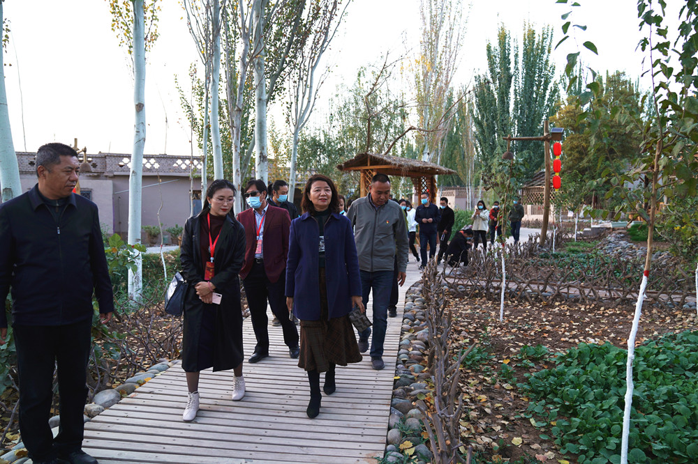 采访团在霍城县大西沟乡苜蓿台子村扶贫示范点参观
