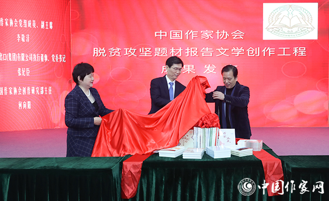 李敬泽、张纪臣、何向阳为“脱贫攻坚题材报告文学创作工程”图书揭幕