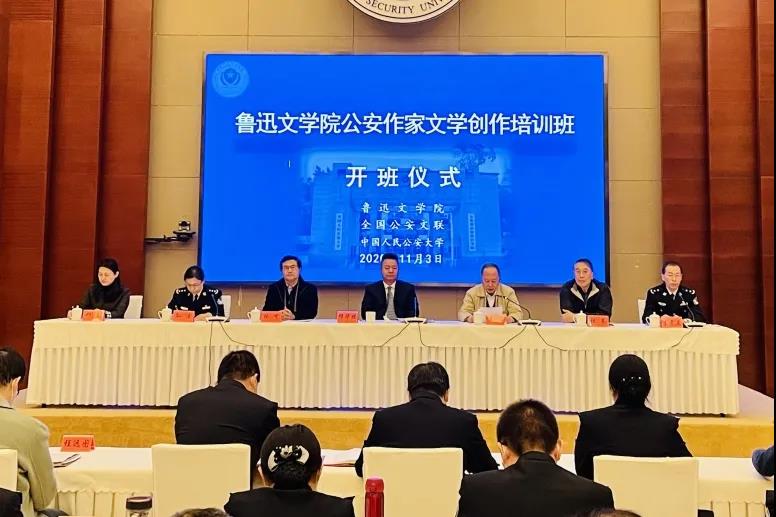 11月3日上午,鲁迅文学院公安作家文学创作培训班在中国人民公安大学正式开班,中国作家协会书记处书记邱华栋、全国公安文联主席王俭出席开班仪式并讲话。中国人民公安大学副校长李克美致辞。鲁迅文学院常务副院长徐可、副院长邢春,全国公安文联副主席张策和来自全国26个省(直辖市、自治区)及行业公安的50名公安作家、文学工作者参加。开班仪式由公安部新闻宣传局一级巡视员、副局长、全国公安文联秘书长孙洁主持。