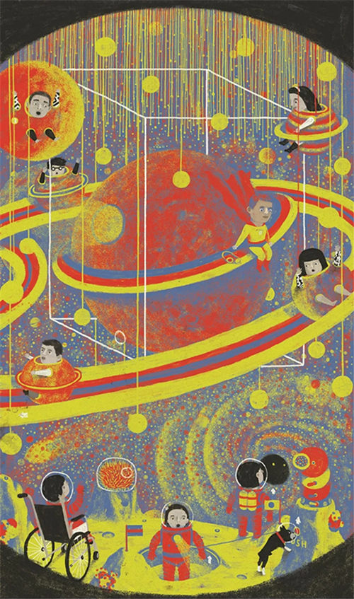 该插画展分为专业组和公众组,专业组面向全球专业插画师,每年都会设定年度创作主题。公众组则面向所有爱阅读、爱绘画的少年儿童和绘画爱好者,以上年度陈伯吹国际儿童文学奖获奖作品作为创作主题。