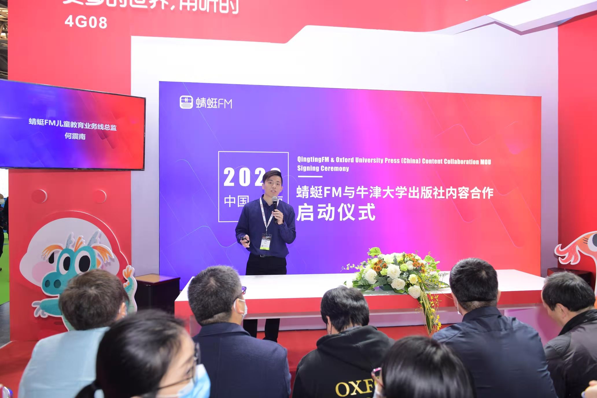 11月13日,在上海国际童书展上,网络音频平台蜻蜓FM宣布同牛津大学出版社达成内容合作意向,蜻蜓FM将基于牛津最新出版的《牛津英语话中国》(Talk About China with Oxford)系列的内容开发,包括科学、英语等全科教育产品,致力于在儿童教育领域挖掘全场景生态合作,共同进行内容创作与流量建设。