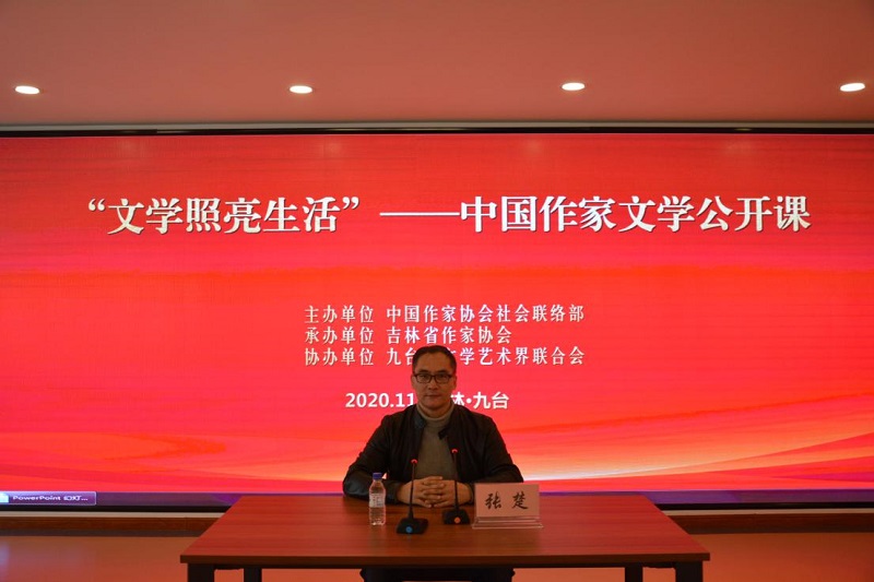 11月12日,由中国作家协会社会联络部主办,吉林省作家协会承办,东北师范大学文学院、九台区文学艺术界联合会协办的“文学照亮生活”——中国作家“文学公开课”和文学阅读分享活动在吉林举办。活动邀请第六届鲁迅文学奖获得者张楚、第七届少数民族文学创作骏马奖获得者韩静慧为高校师生、基层作家和文学爱好者讲授文学创作技巧经验,分享阅读感悟与体会。