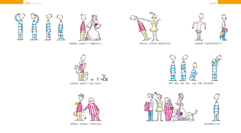 在《什么事都在发生》中,作者以深情又诙谐的笔法描绘了90则婚姻、爱情、两性等关系中遭遇的人生困境,试图以灰色幽默的方式治愈忧伤。在《关于上班这件事中》中,作者又用顽童一般戏谑的笔触,将“上班”这件几乎所有人都要面对的事解读得妙趣横生。