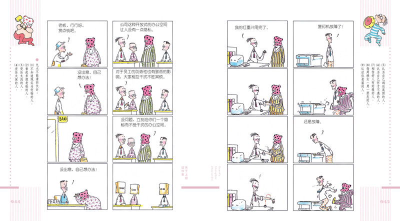 “换一个视角去选择,能解开人生的困境”,是朱德庸三十年来一直坚持手绘创作幽默的初心。在当下语境中,重新翻开这两部与我们的生活、工作紧密相关的经典作品,用“朱氏幽默”治愈我们人生中的“不开心”,相信会给读者带来新的阅读体验。