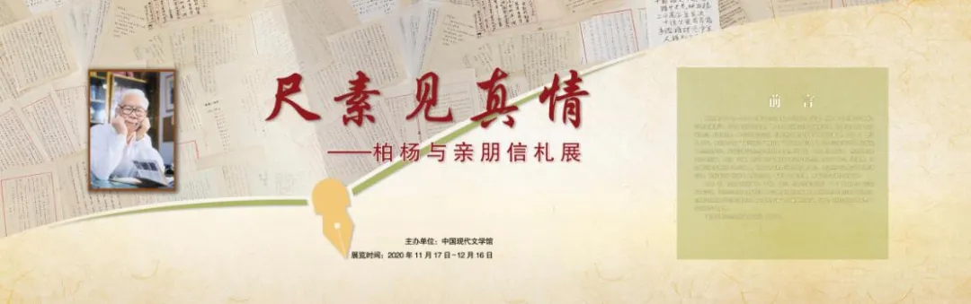 2020年11月17日,为纪念柏杨先生诞辰一百周年,“尺素见真情——柏杨与亲朋信札展”在中国现代文学馆拉开序幕,展览展出柏杨先生与家人朋友读者间书信95通。此展将持续到12月16日。