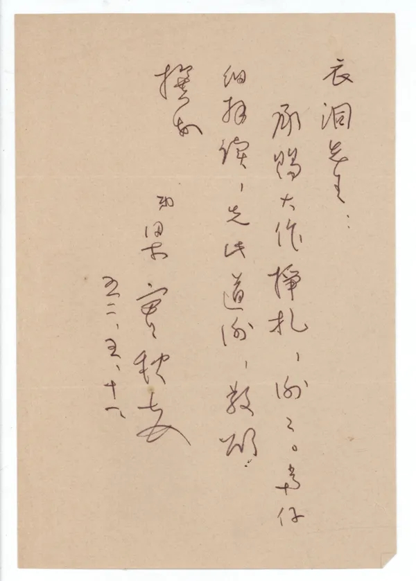梁实秋致谢柏杨,云承赐大作《挣扎》,当仔细拜读。
