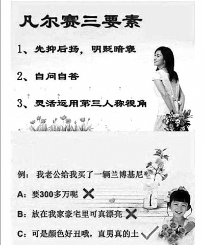 网友总结的“凡尔赛三要素”。资料图片