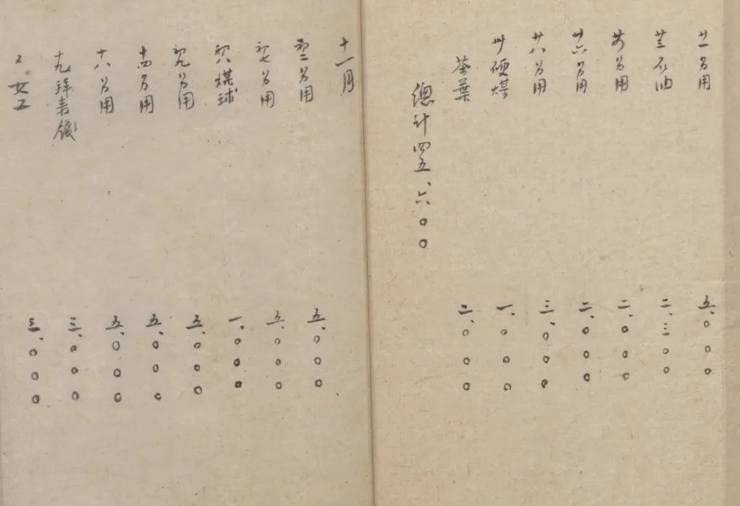 帐本中钱数的记法,和现在也不一样,小数点后面有三位数,代表着“角、分、匣”,可以看出当时的币制,有铜元,还以“吊”计价。家用帐月有小结,年终有总结算。体现出鲁迅勤俭的家风。真是笔笔的柴米油盐,妥妥的现世安稳。