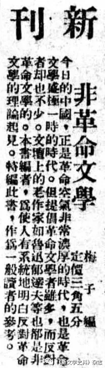 1929年1月19日,《申报》第5版刊登了由上海光明书局发行的几本新书的广告,其中第一本是《非革命文学》: