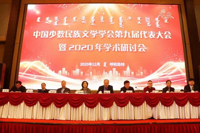 2020年12月12日至14日,中国少数民族文学学会第九届代表大会暨2020年学术研讨会在呼和浩特市开幕。此次年会由中国少数民族文学学会、内蒙古大学主办,内蒙古大学文学与新闻传播学院承办。会议为期3天,来自全国30个省、自治区和直辖市的约240名学者线上线下齐聚一堂,就史诗学与口头传统研究、中国古代少数民族文学研究、跨学科与民间文学研究、中国现当代少数民族文学研究等议题展开讨论。