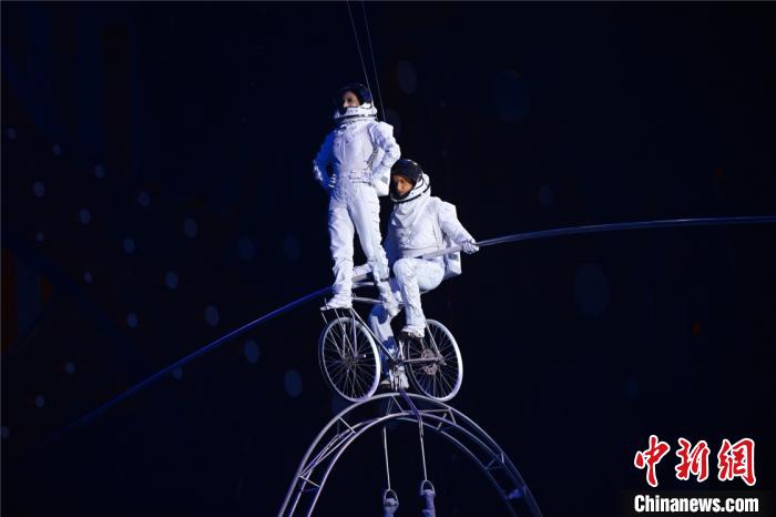 《新年奇幻夜》中,充满强烈的科技感、时尚感,以及运用丰富多元现代舞台效果的马戏节目,为观众呈现耳目一新的视觉体验。其中来自匈牙利的《太空漫步》是国际马戏节金奖节目,含金量十足。在近20米的高空,“宇航员”通过超高难度的表演,展现绝美的技艺,创造出身体平衡的极限之美。