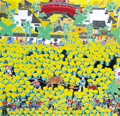 农民画出自农民之手,深刻表现了广大人民群众“崇尚劳动、热爱劳动、辛勤劳动、诚实劳动”的劳动精神。去年,中国美术家协会等单位举办的“决胜全面小康——第二届全国农民画作品展”上,就涌现出不少农民画佳作。这些作品是农民画创作者深入生活、融合切身体会创作而成。其中,一些反映扶贫脱贫感人事迹的优秀作品,成为伟大时代的生动写照。展览还展出了融合农民画元素的丝巾等文创产品,体现出文化产业与艺术创作相结合的广阔前景。打造特色农民画产业基地,也有助于农民画家利用自身创作成果实现脱贫致富。陕西户县农民画文化产业示范基地、浙江舟山渔民画传承教学基地等,既原汁原味地保留了不同地区传统文化特色,同时有效引导了农村文化产业发展,创新了精准扶贫方式方法。