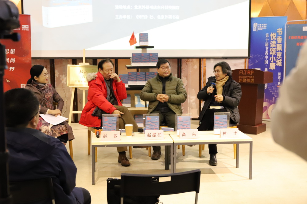 近日,由《诗刊》社与广西师范大学出版社联合推出的《新译外国诗人20家》问世,并于1月6日在北京外研书店东升科技园店举办了首发仪式。《诗刊》主编李少君出席并致辞,与《诗刊》副编审赵四、翻译家赵振江、翻译家高兴、翻译家树才以及北京外研书店总经理付帅共同为《新译外国诗人20家》新书揭幕。
