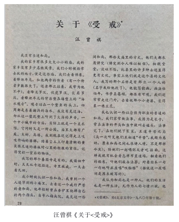[40][42] 可人:《戒不掉的五欲六情——读小说〈受戒〉后乱发的议论》,《北京文学》1981年第1期。