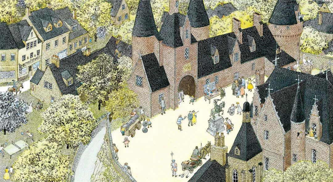 1977年《旅之绘本》系列第一册“中欧篇”出版时,安野光雅51岁;2018年《旅之绘本IX》(瑞士篇)出版,此时,安野光雅已经92岁,他用半生的时间绘制了一幅动人的世界长卷。在这幅画卷中,他以鸟瞰的视角描绘出了东西方独具特色的风景,在风景之中,隐藏着更为丰富有趣的内容:文学名著、名人画作、经典电影、建筑古迹……