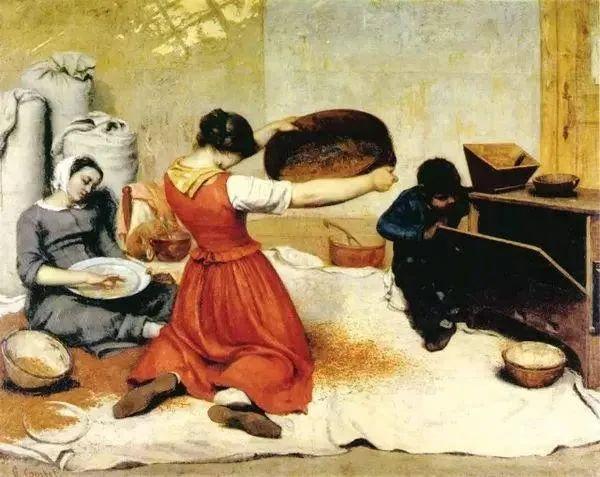 他在绘本当中也为读者藏了数不尽的惊喜,《旅之绘本》当中藏了数不清的名画,如乡间的小路边,一个妇人在家门前筛着谷子,而看似是无心之笔,其实则是居斯塔夫的一幅名画《筛谷的妇女》。