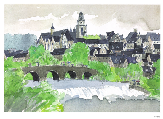 《旅之绘本》也是最能代表他艺术才华的作品。安野光雅喜欢用水彩作画,着色淡雅,运用水彩颜料的无穷变化营造出端庄稳重、温馨怡然的氛围,温润气息弥漫画间。他的画富有传统日本画的韵味,同时, 他又将西洋绘画中的写生和素描融入创作中,丰富的细节尤其令人称道。