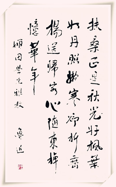 万万没想到,28年后的2005年7月我访问日本时,在岛根县松江市突然听导游介绍说附近的小镇鹿岛是增田涉的出生地,那里的历史民俗资料馆内设有“增田涉纪念室”。我们立即改变访问日程,临时增加了参观项目,驱车前往历史民俗资料馆。馆内收藏有58封鲁迅致增田涉的信以及鲁迅题诗的真迹:“扶桑正是秋光好,枫叶如丹照嫰寒。却折垂杨送归客,心随东棹忆华年。”