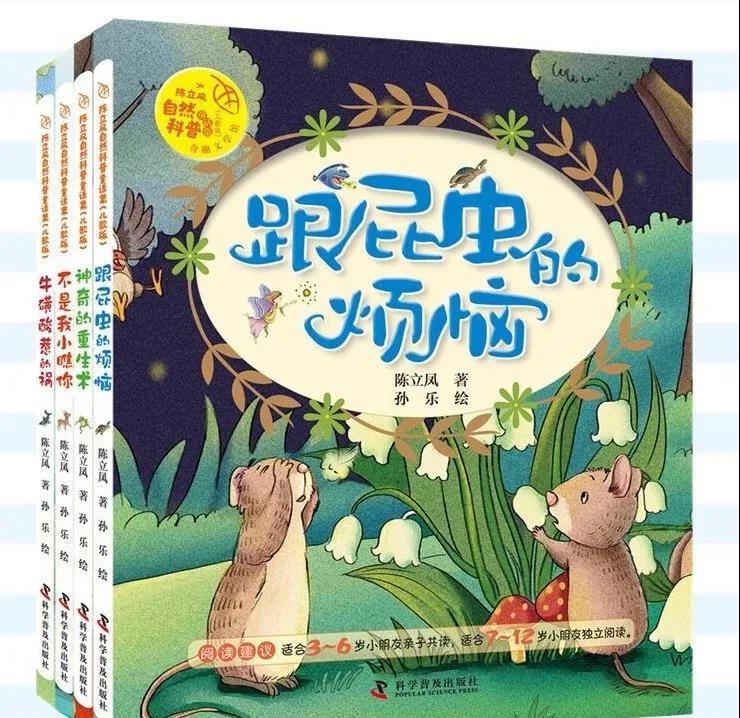 《陈立凤自然科普童话集》(共4册)由科学普及出版社出版。四本书分别为《跟屁虫的烦恼》《神奇的重生术》《牛磺酸惹的祸》《不是我小瞧你》。每个分册都有20个独立的童话故事,20个主题科普小知识,20首儿歌。另外,书中还穿插了涂色页,增强互动,合理用眼。