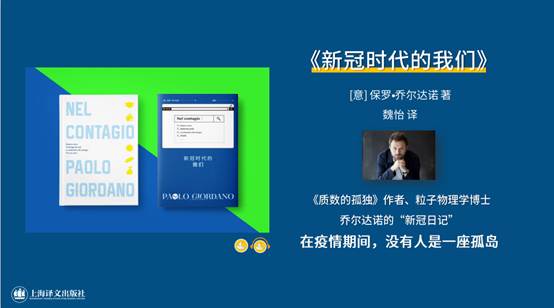 意大利80后作家、粒子物理学博士保罗·乔尔达诺的新冠日记《新冠时代的我们》已于今年一月率先推出。此前,译文社曾出版过乔尔达诺畅销处女作《质数的孤独》中译本。他的新作《新冠时代的我们》以忠实的记录、独到的见解以及跨学科视域给予读者以警醒,深入反思如何真正从这次疫情中吸取教训,做出改变。据悉,乔尔达诺的虚构作品《逆光之夏》也将在年内面世。