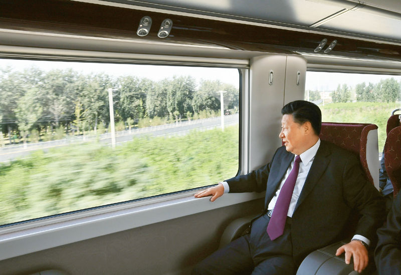 ↑2019年9月25日上午,北京大兴国际机场投运仪式在北京举行。中共中央总书记、国家主席、中央军委主席习近平出席仪式,宣布机场正式投运并巡览航站楼。这是习近平乘坐轨道列车前往北京大兴国际机场。 新华社记者 谢环驰/摄