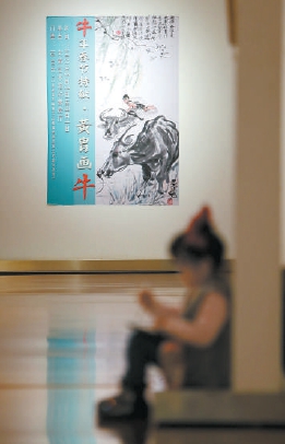 图为正在炎黄艺术馆举办的黄胄画牛展。 本报记者 甘南摄