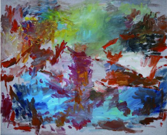这种临场感的和谐使画家不再固执于数十年的具象绘画训练。事物的在场,当然包含了比一套固定技法或绘画体系要多得多的意义。因此,现场创作仿佛一场严肃的仪式,旨在把已经失去联系的世界重新请回到画布上。真正能够呈现在画布上的不过是这个世界的显像,但通过抽象,显像就表达为一系列感官知觉的链接与游戏,也就是富有自发性的色彩。画家将这种追求称之为创造过程中主观和客观的互动。色彩也好,形体也罢,无不是取之于外、判摄于内的创作过程,最终呈现为有意味的笔触,或用画家自己的话来说,“印象派作品的外光闪烁感”。当然,从这个意义上说,追求笔触的“来处”——无论这种来处是否是主客交融的产物——不妨仍然视为对创作对象的一种“摹写”,但是,抽象意识的自觉则恰好剔除了这种“摹写”的客观意味。换言之,印象派执著于外部客观性或者说光影之“真”的追求,完全被画家关于抽象绘画的自我理解所取代。实际上,这种理解可以非常传统地形诸于传统绘画的内外关系,从而与西方抽象画传统的自我理解判然有别。