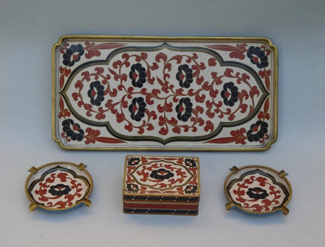 林徽因参与革新中国清代的景泰蓝工艺,她辅导当时刚归国的常沙娜,利用敦煌纹饰设计的一套烟具,如此精美。