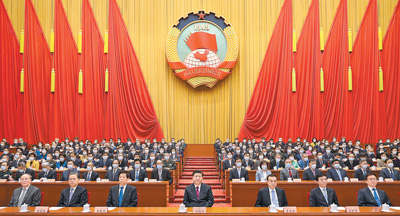 3月10日,中国人民政治协商会议第十三届全国委员会第四次会议在北京闭幕。中共中央政治局常委、全国政协主席汪洋主持闭幕会并发表讲话。本报记者 张武军摄