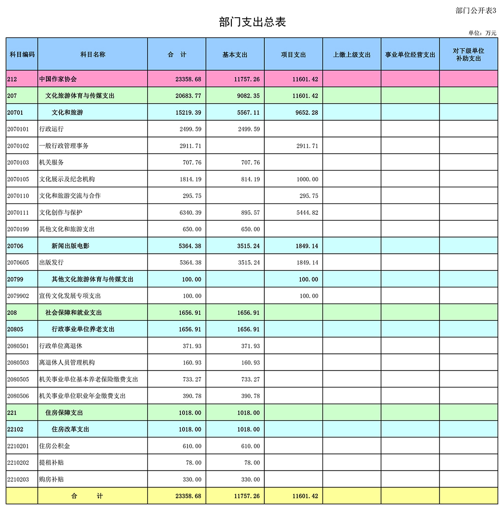 (十二)文化旅游体育与传媒支出(类)新闻出版电影(款)出版发行(项):主要指中国作协所属报刊社网出版传播的项目支出。
