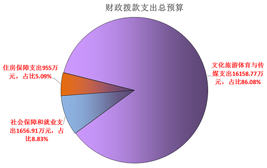文化旅游体育与传媒支出(类)支出10918.00万元,占比82.20%;社会保障和就业支出(类)支出1409.68万元,占比10.61%;住房保障支出(类)支出955.00万元,占比7.19%。