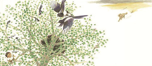 不得不说,在我们的故事型原创绘本中,存在着不少不会讲有结构的故事的作品。故事讲不好,“小”绘本立不起来,更无法“大”起来。在这个重要方面,《喜鹊窝》给我们提供了一个难能可贵的经验。