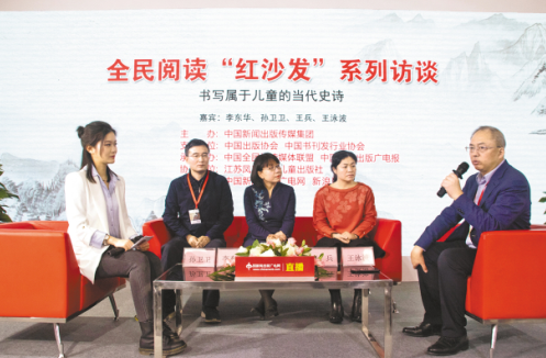 3月31日下午,儿童文学作家、鲁迅文学院副院长李东华,儿童文学作家孙卫卫,中共党史出版社第二编辑部主任、编审王兵,江苏凤凰少年儿童出版社社长王泳波做客“红沙发”系列访谈,围绕苏少社为迎接建党100周年重点打造的主题读物“童心向党·百年辉煌”书系展开分享,从书系的出版宗旨、呈现方式、创作特色、文学价值、思想内涵等角度进行深入探讨,现场氛围热烈。